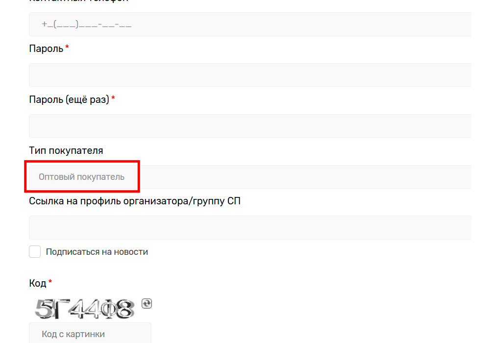 Если вы новый пользователь, зарегистрируйтесь в нашем интернет-магазине (кнопка "Регистрация" в правом верхнем углу) При регистрации выберите тип: "Оптовый покупатель"