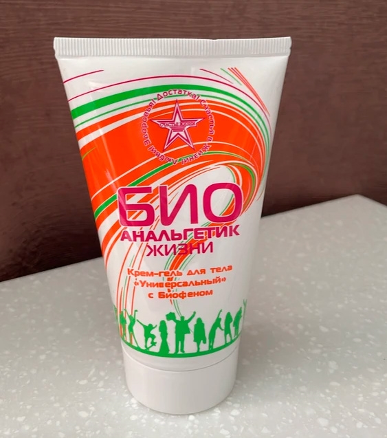 Биоанальгетик — универсальный крем-гель для тела с биофеном. Применяется при мышечной и суставной боли, варикозном расширении вен, ушибах, гематомах, отеках, укусах насекомых. Крем способен одновременно разогревать и охлаждать кожу, это помогает снять боль.