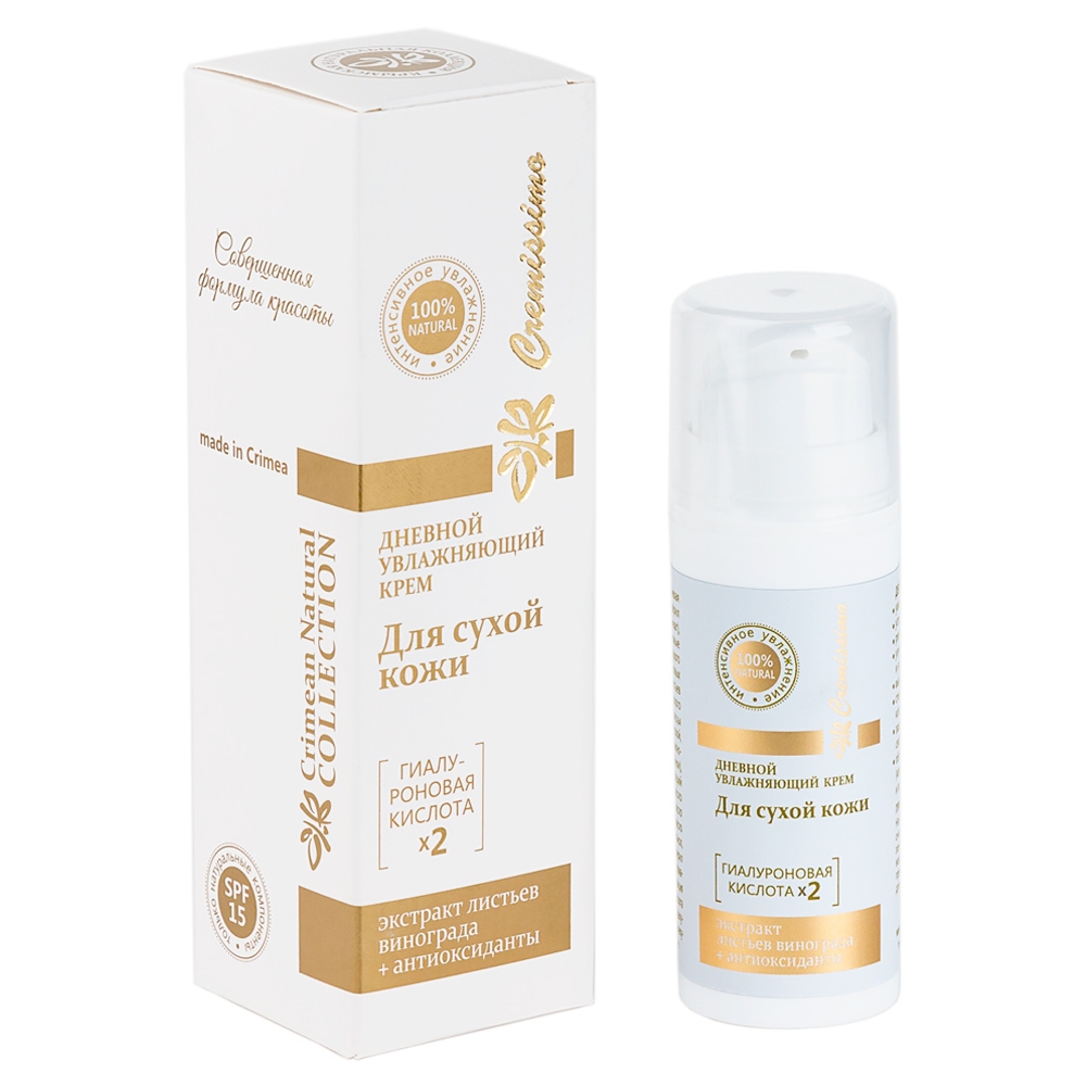 Дневной увлажняющий крем на основе гиалуроновой кислоты с экстрактом листьев винограда, комплексом антиоксидантов увлажняет и регенерирует кожу, устраняет мелкие морщинки, улучшает эластичность и упругость кожи, выравнивает цвет лица, стимулирует синтез коллагена, защищает от образования свободных радикалов, обладает ангиопротекторным (капилляроукрепляющим) и противоотечным действием.