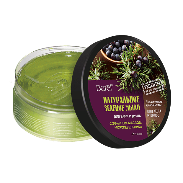 Артикул: 0480-75304 | Натуральное зеленое мыло для тела и волос с эфирным маслом можжевельника купить за 624 ₽ в интернет-магазине "Зелёная Коробка"