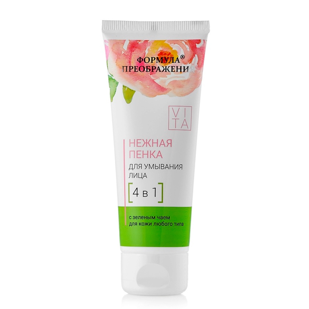 Нежная пенка для умывания лица 4 в 1 с зеленым чаем. Формула преображения
