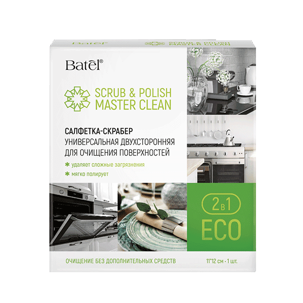 Трехслойная салфетка выполнена из комбинированных тканей и скрабирующей нити, что позволяет сочетать в себе как высокие очищающие, так и полирующие свойства. Отлично подходит для бережного удаления стойких и въевшихся загрязнений с бытовых поверхностей, одновременно полируя их и придавая им блестящий и новый вид.