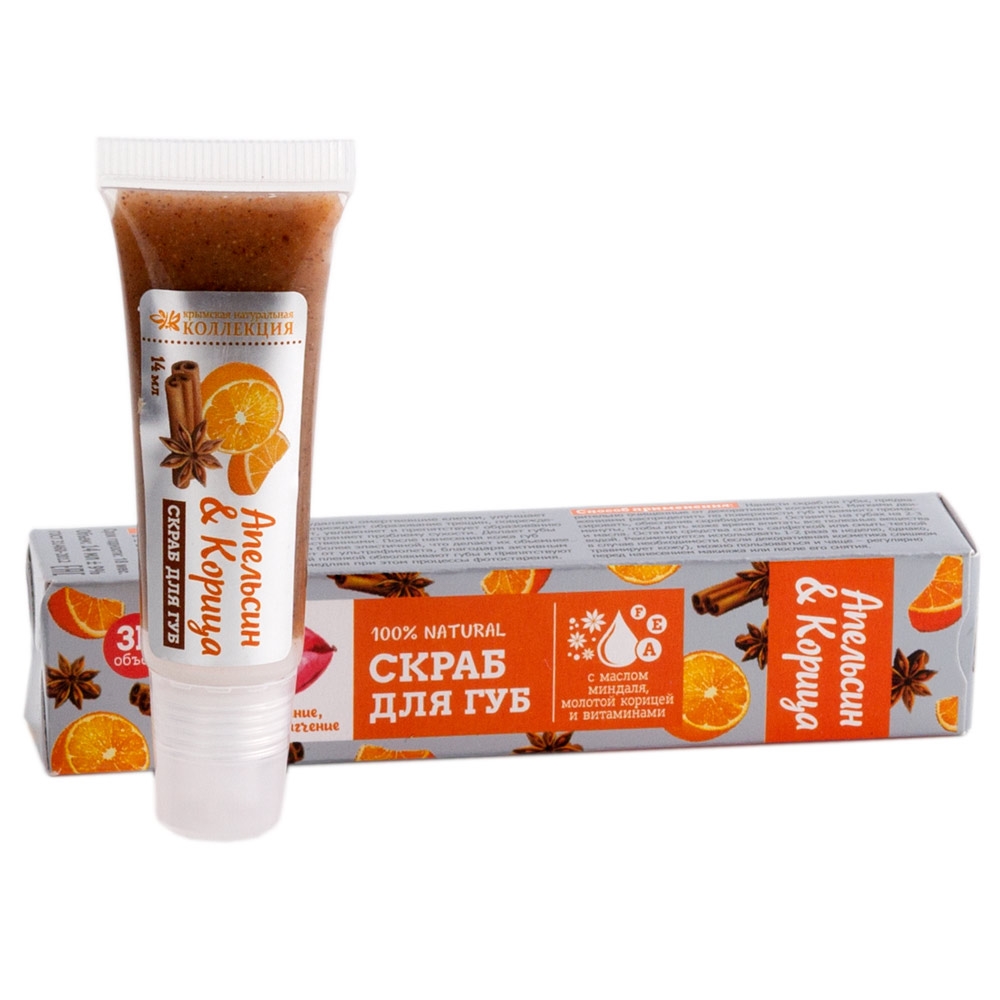 Скраб для губ Апельсин и Корица (с маслом миндаля, молотой корицей и витаминами)