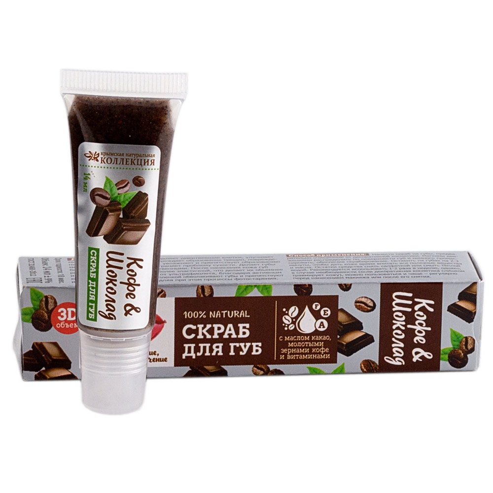 Скраб для губ Кофе и Шоколад (с маслом какао, молотыми зернами кофе и витаминами)