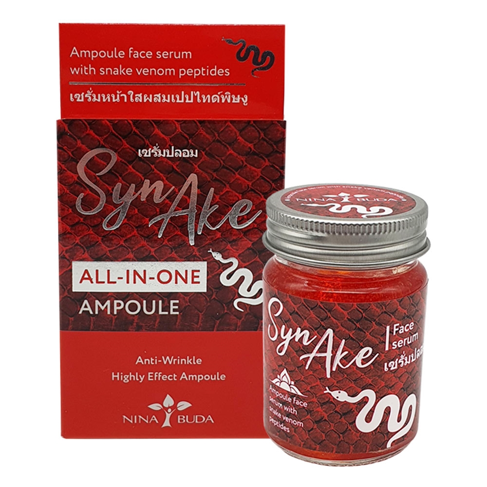 Face serum «NINA BUDA» SYN-AKE Инновационная ампульная сыворотка – прекрасное средство для сохранения цветущего внешнего вида и омоложения вашей кожи. Содержит синтетический аналог пептидов яда Храмовой гадюки – весьма почитаемого на Востоке символа долголетия и семейного счастья.